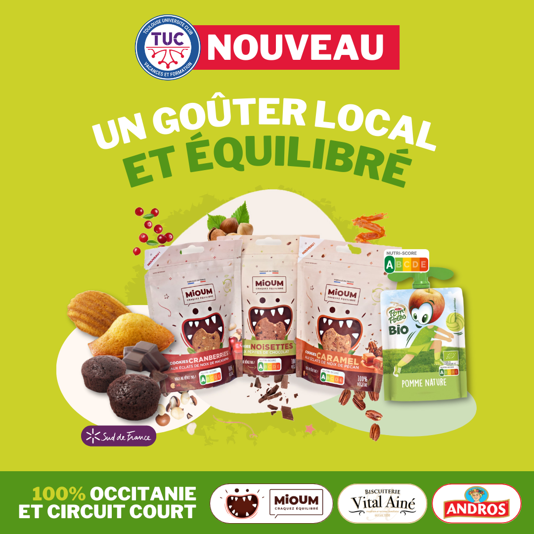 Le goûter est un moment attendu par les enfants, c’est pourquoi le TUC Vacances a choisi de collaborer avec Mioum, une marque reconnue pour ses cookies à haute valeur nutritive et au NutriScore A. Le NutriScore est un système d’étiquetage nutritionnel qui aide les consommateurs à identifier facilement la qualité nutritionnelle des produits. Le NutriScore A indique un produit de qualité nutritionnelle élevée, riche en nutriments bénéfiques et pauvre en ingrédients néfastes.